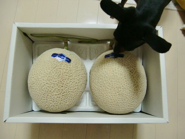 ねこんだ金曜日ココナパパのおかあさんからりっぱなメロンが届きました。