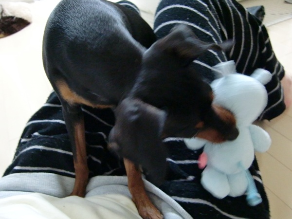 同じピンシャーの男の子がつきまとってました(笑