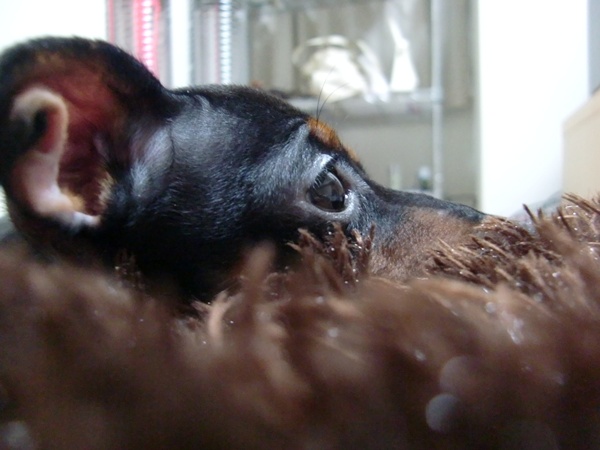さらに近付くと黒いワンちゃんは起き上がってゆっくり尻尾をふって近づいてくれたんですが・・・