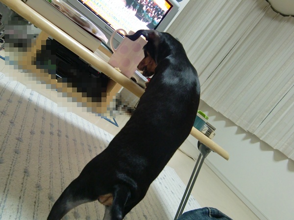 存在に気づいてもポメちゃんよりおばさんの方に興味津々だったようです。